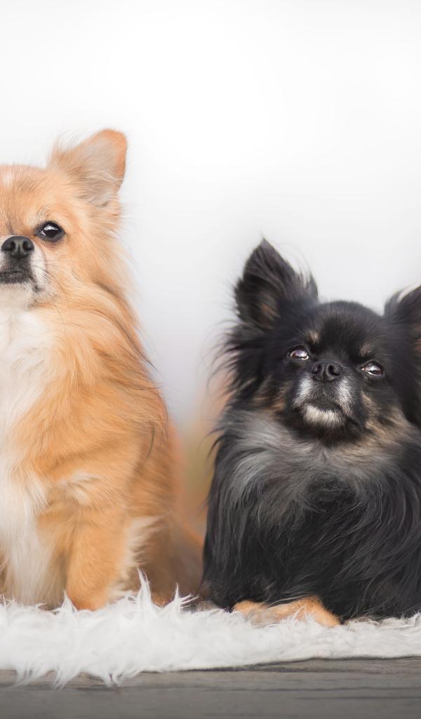 Wallpaper Two small dogs of Chihuahua breed on a gray background