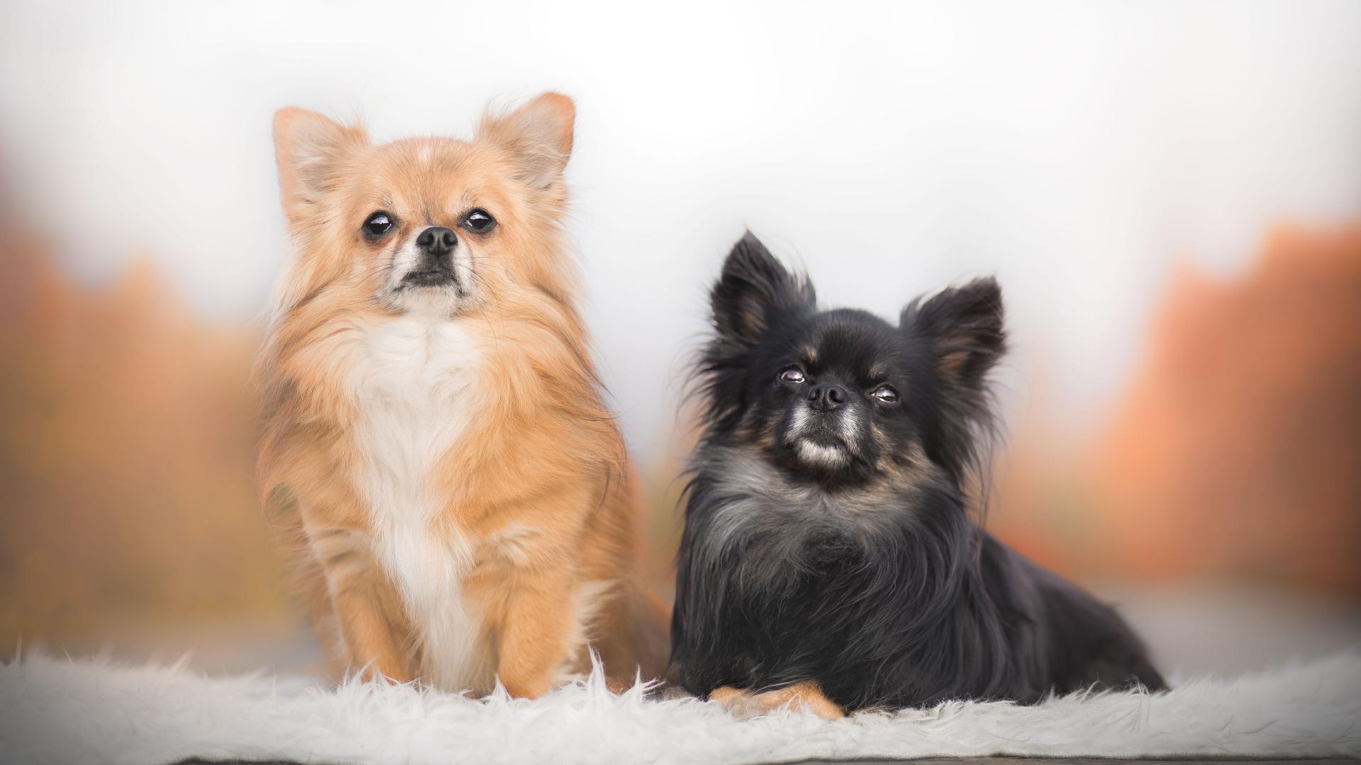 Wallpaper Two small dogs of Chihuahua breed on a gray background