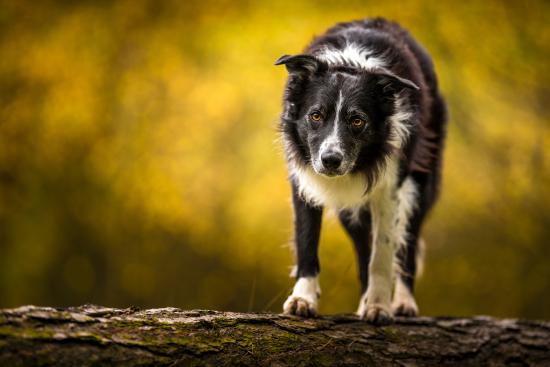Wallpaper Border collie standing on a dry tree