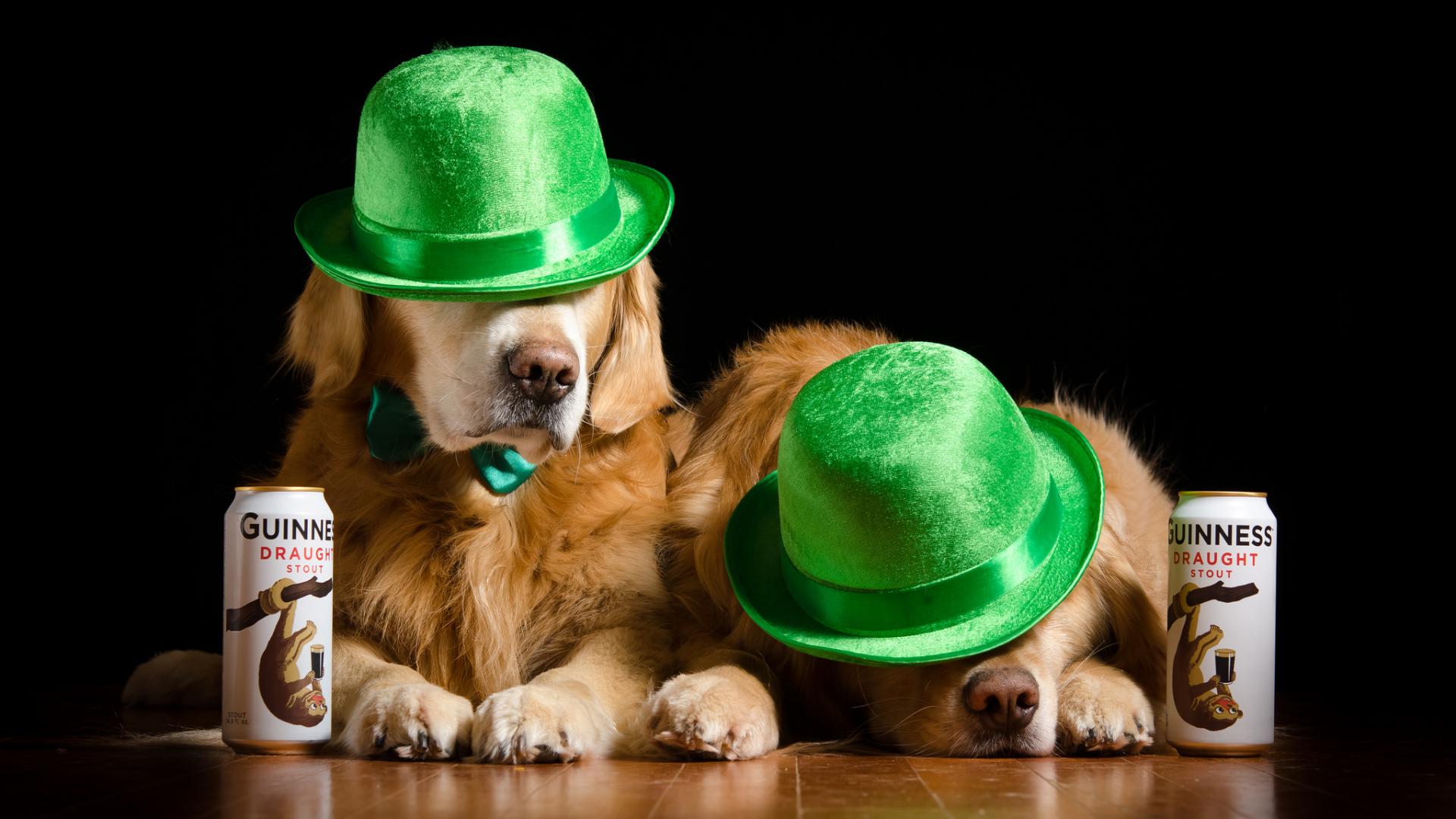 Wallpaper Two golden retriever in green hats