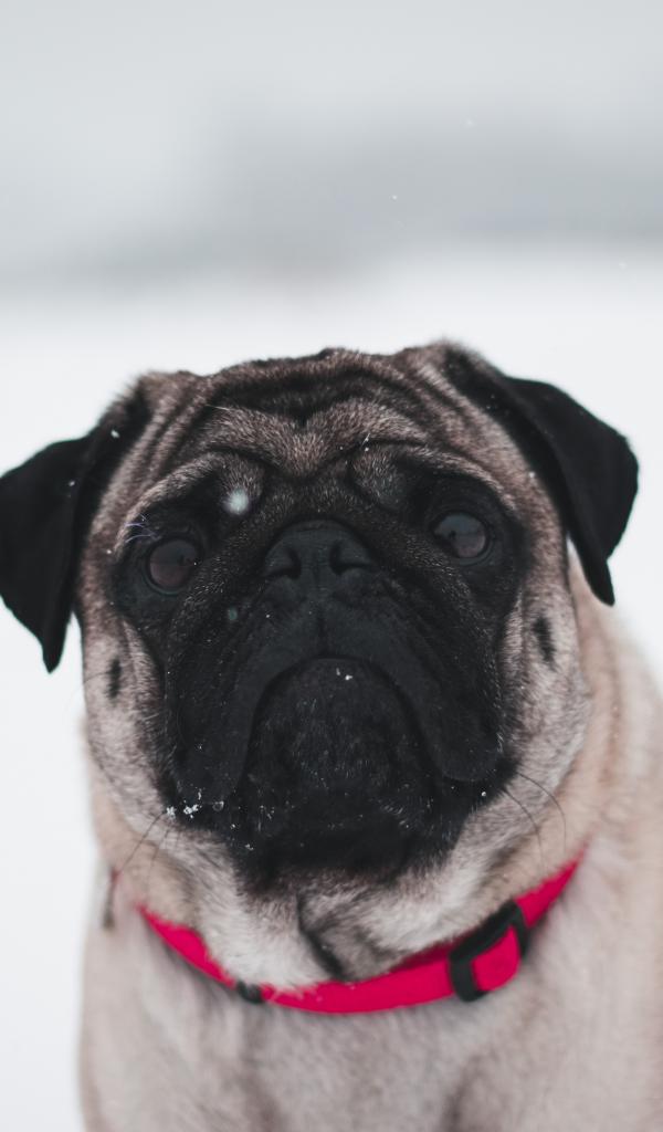 Wallpaper Sad pug to red collar