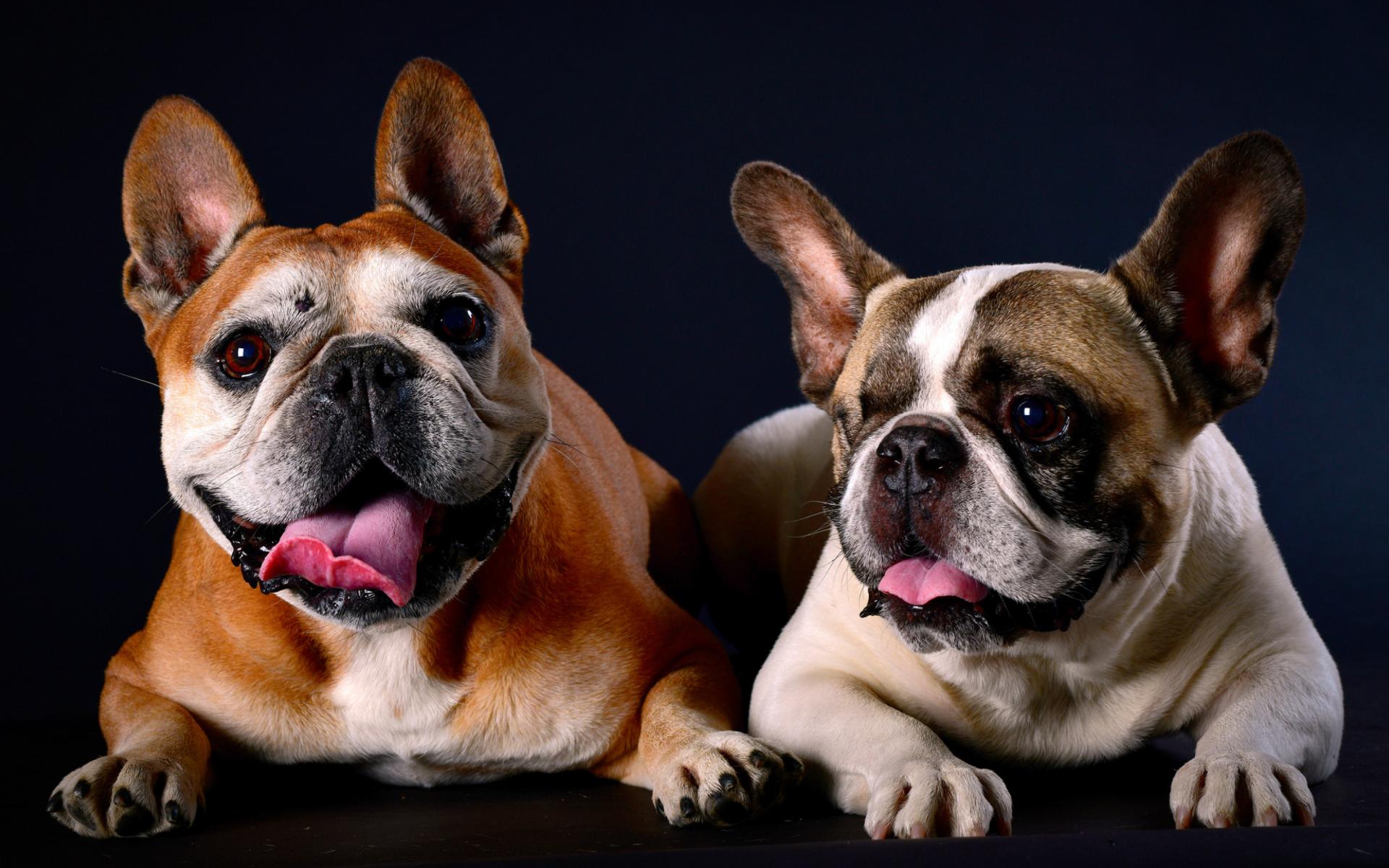 Wallpaper Two bulldogs lie on blue background