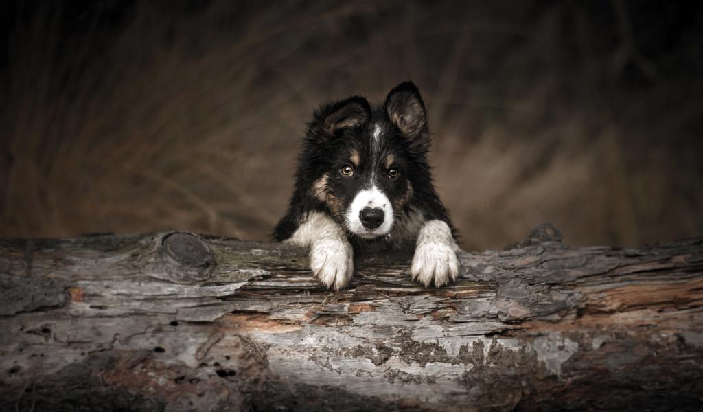 Wallpaper Border Collie puppy lying on a dry tree