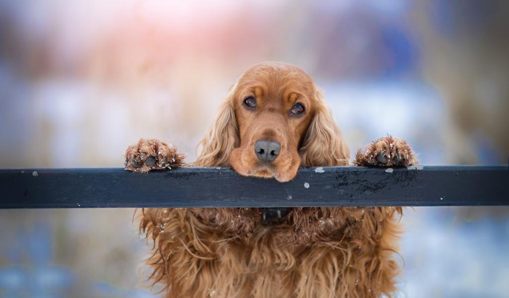 » Wallpaper Sad brown spaniel at the fence