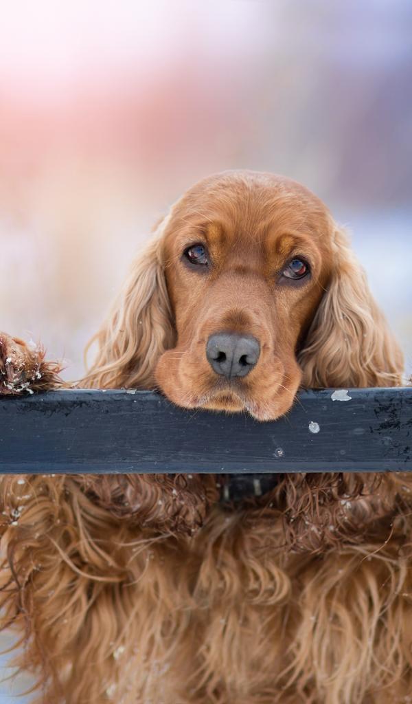 » Wallpaper Sad brown spaniel at the fence