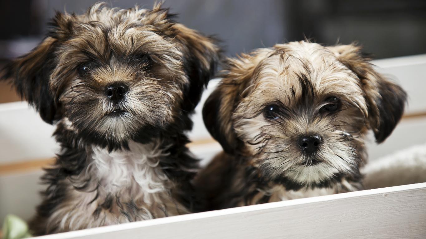 » Wallpaper Two spitz puppies in a box