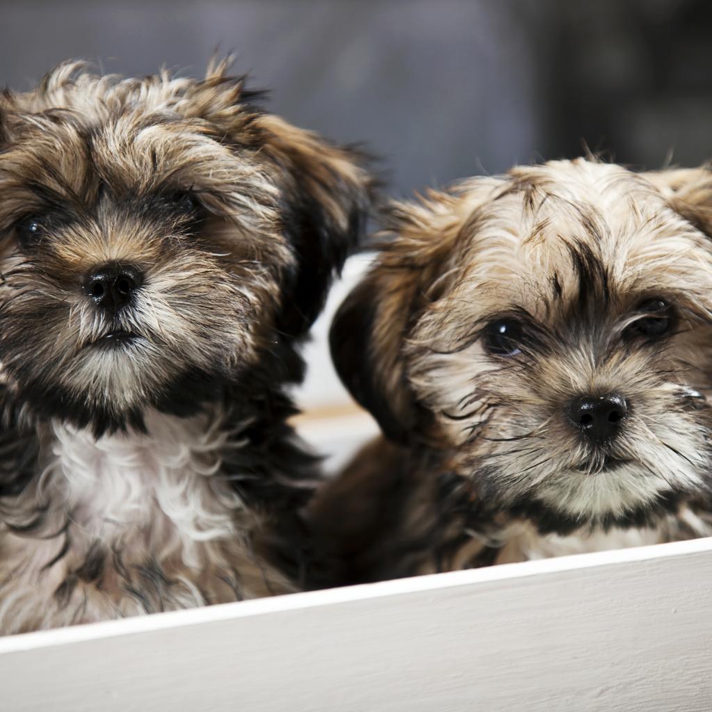 » Wallpaper Two spitz puppies in a box