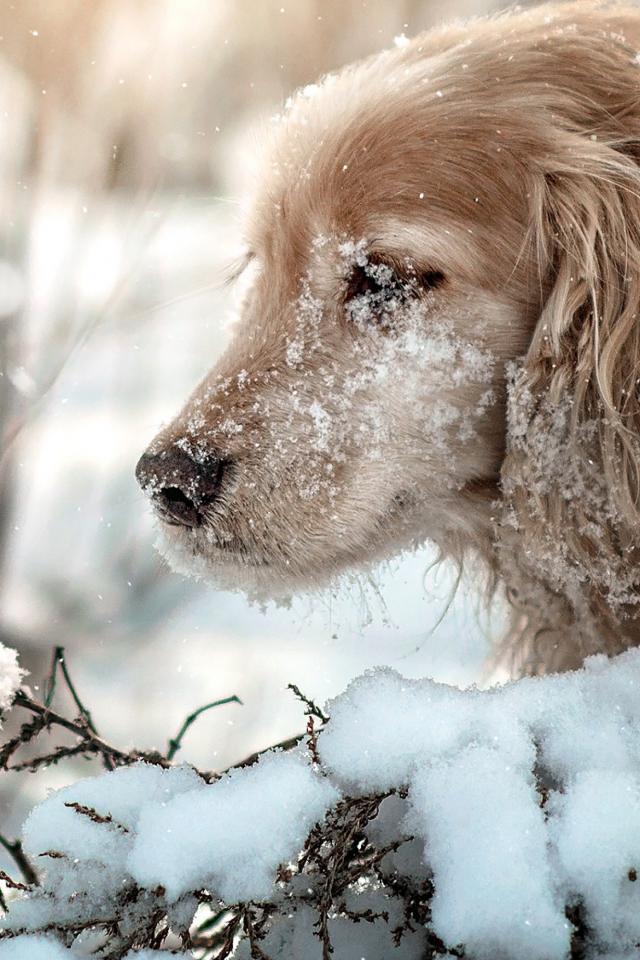 Wallpaper Golden Retriever with a muzzle in the snow