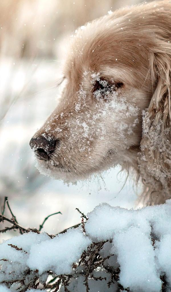 Wallpaper Golden Retriever with a muzzle in the snow