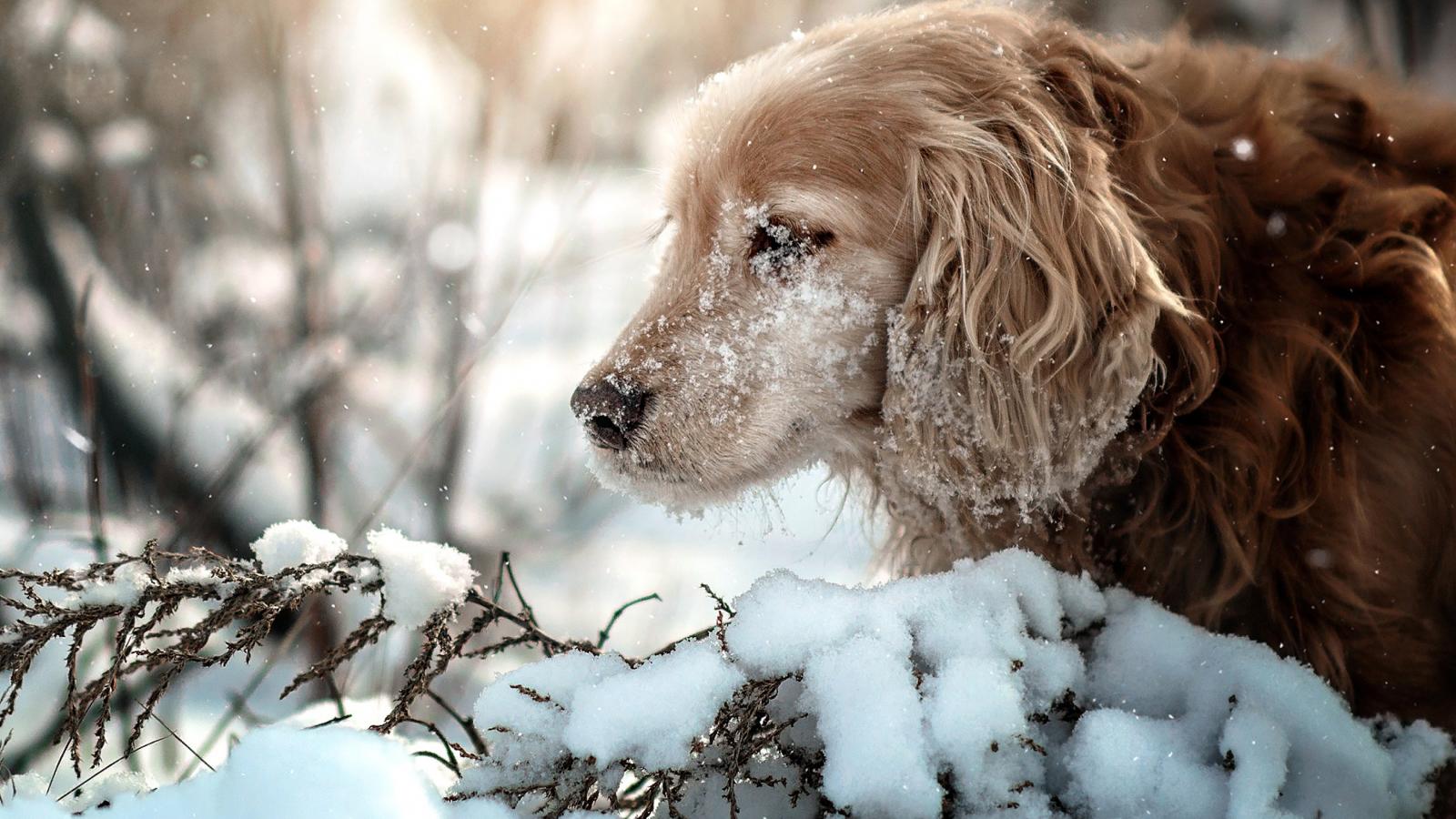 Wallpaper Golden Retriever with a muzzle in the snow