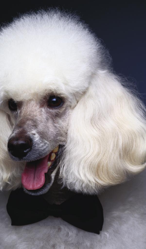 Wallpaper Fluffy white poodle with a black bow tie