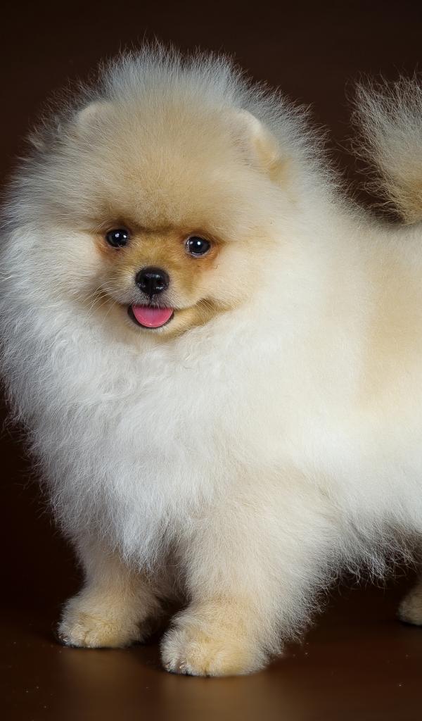 Wallpaper Fluffy funny white spitz on a brown background
