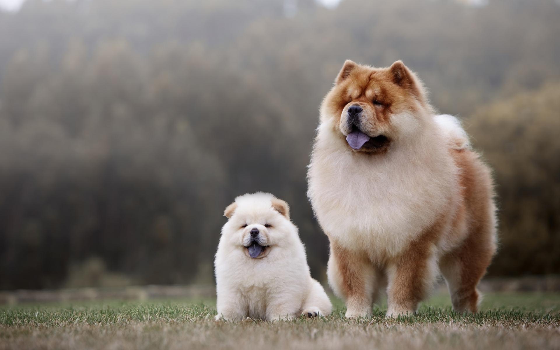 Wallpaper Chow Chow Dog with Fluffy Little Puppy