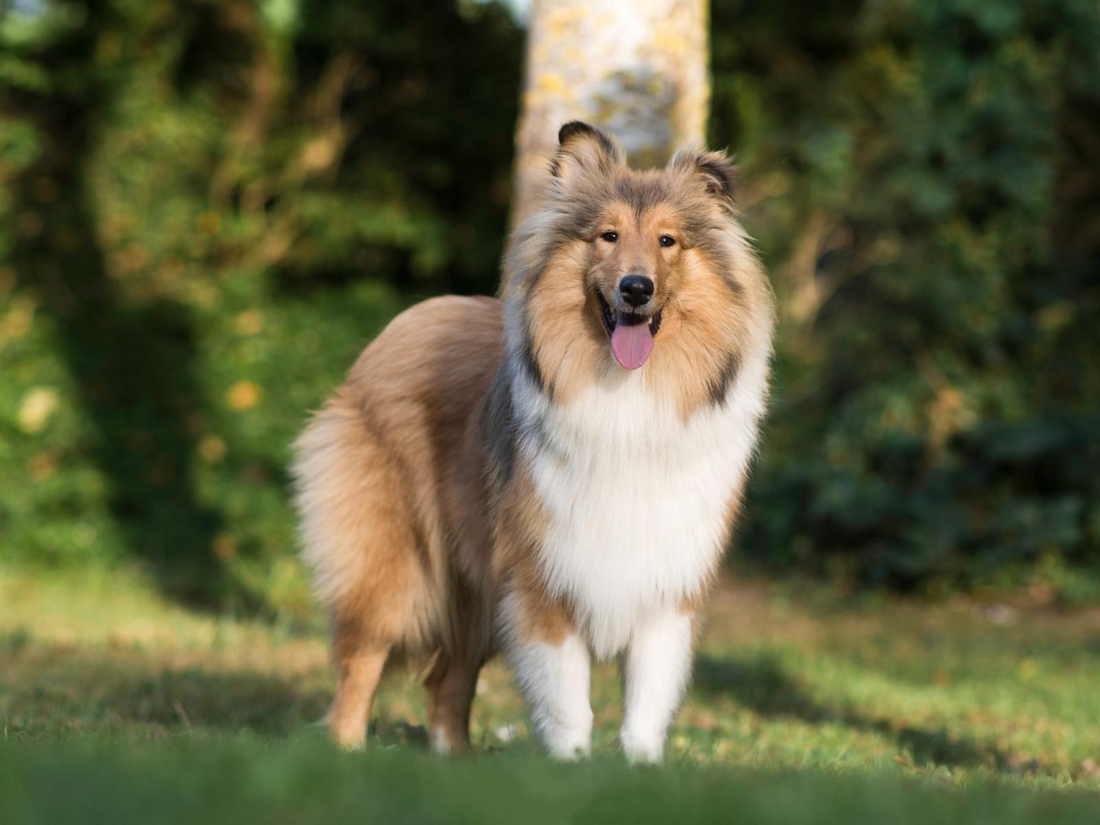 Wallpaper A dog with his tongue hanging out and a wreath on his head
