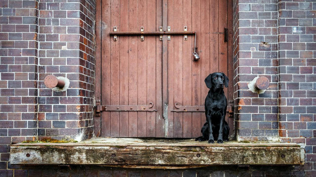 Wallpaper Black Labrador is sitting at the door
