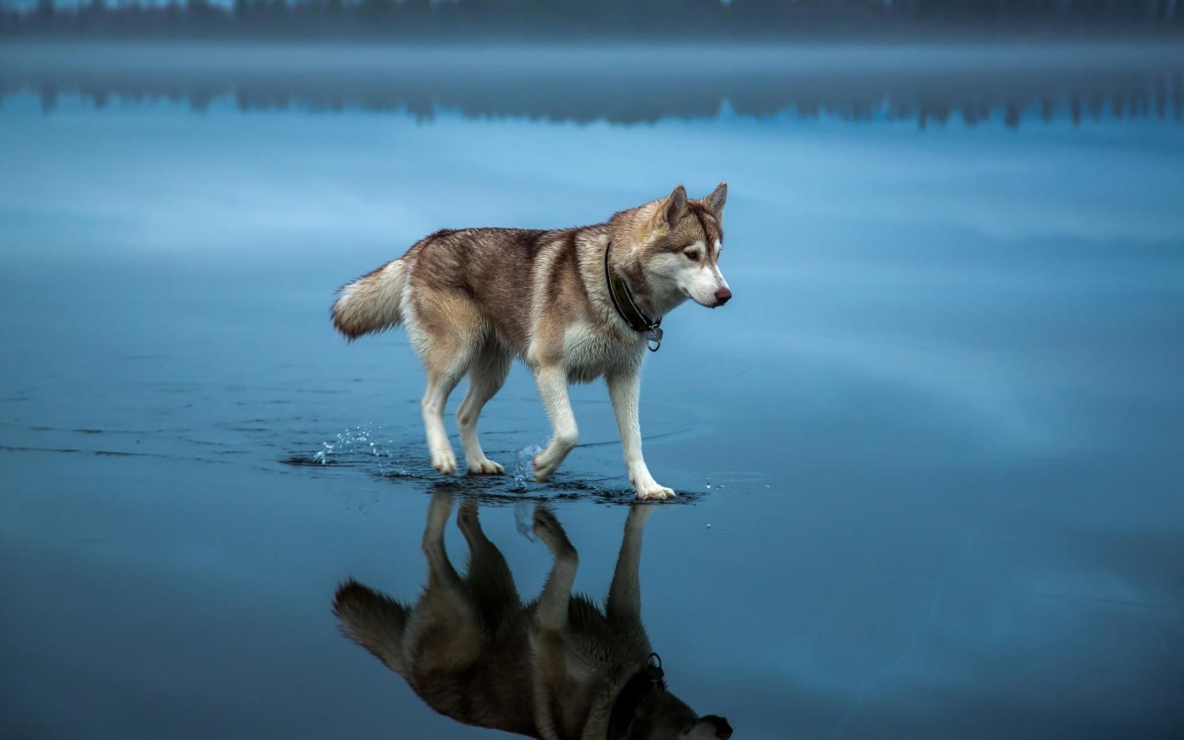 Wallpaper Husky is on the water
