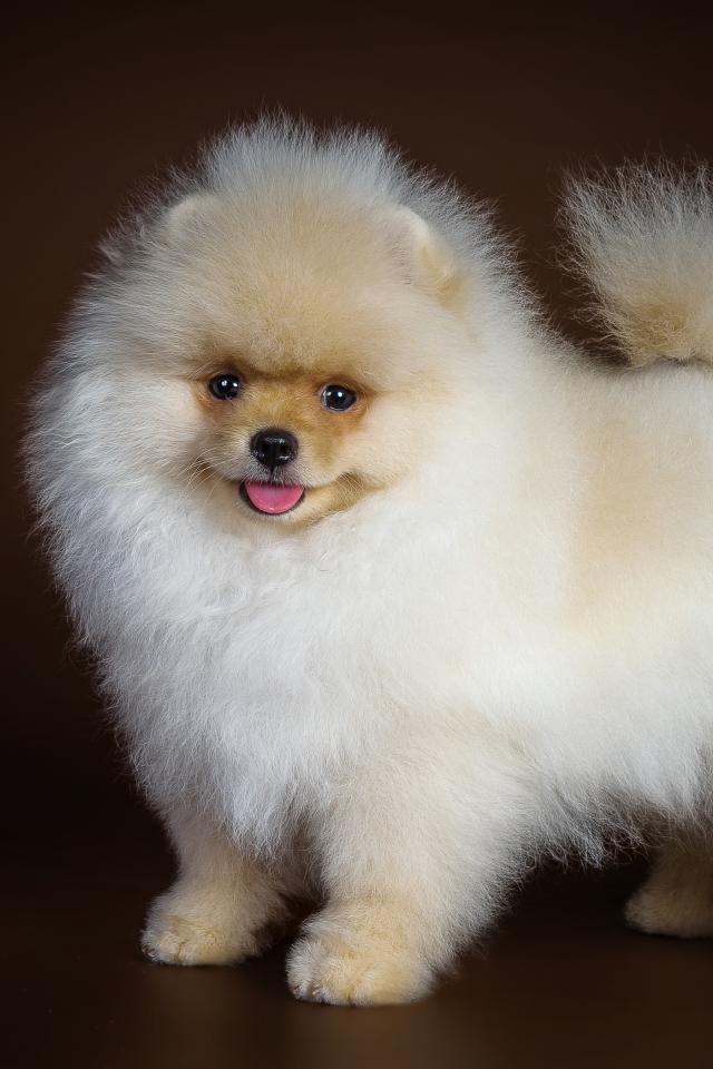 Wallpaper Fluffy white spitz with tongue hanging out
