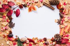 Wallpaper Three little pugs sit on the background of autumn leaves