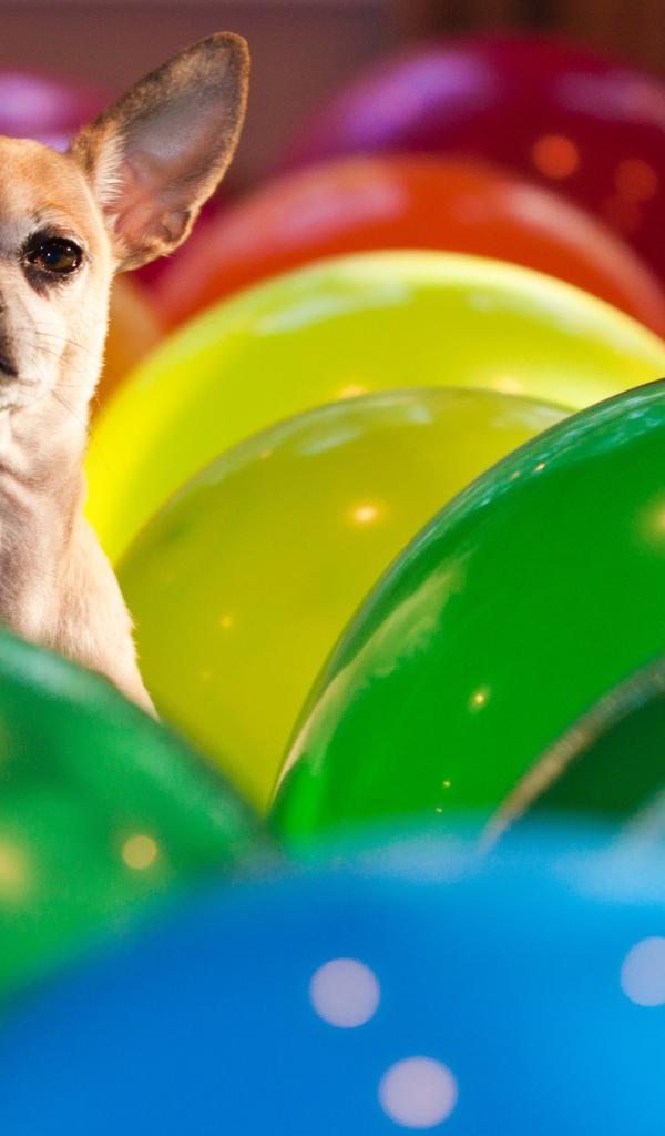 Wallpaper Chihuahua sits in balloons
