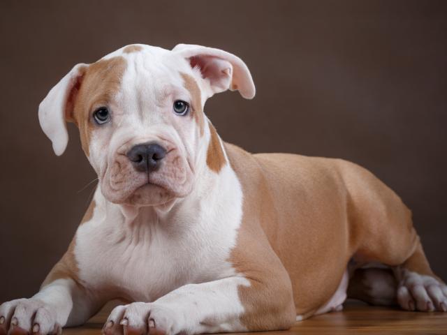 » Wallpaper Staff puppy on wooden floor