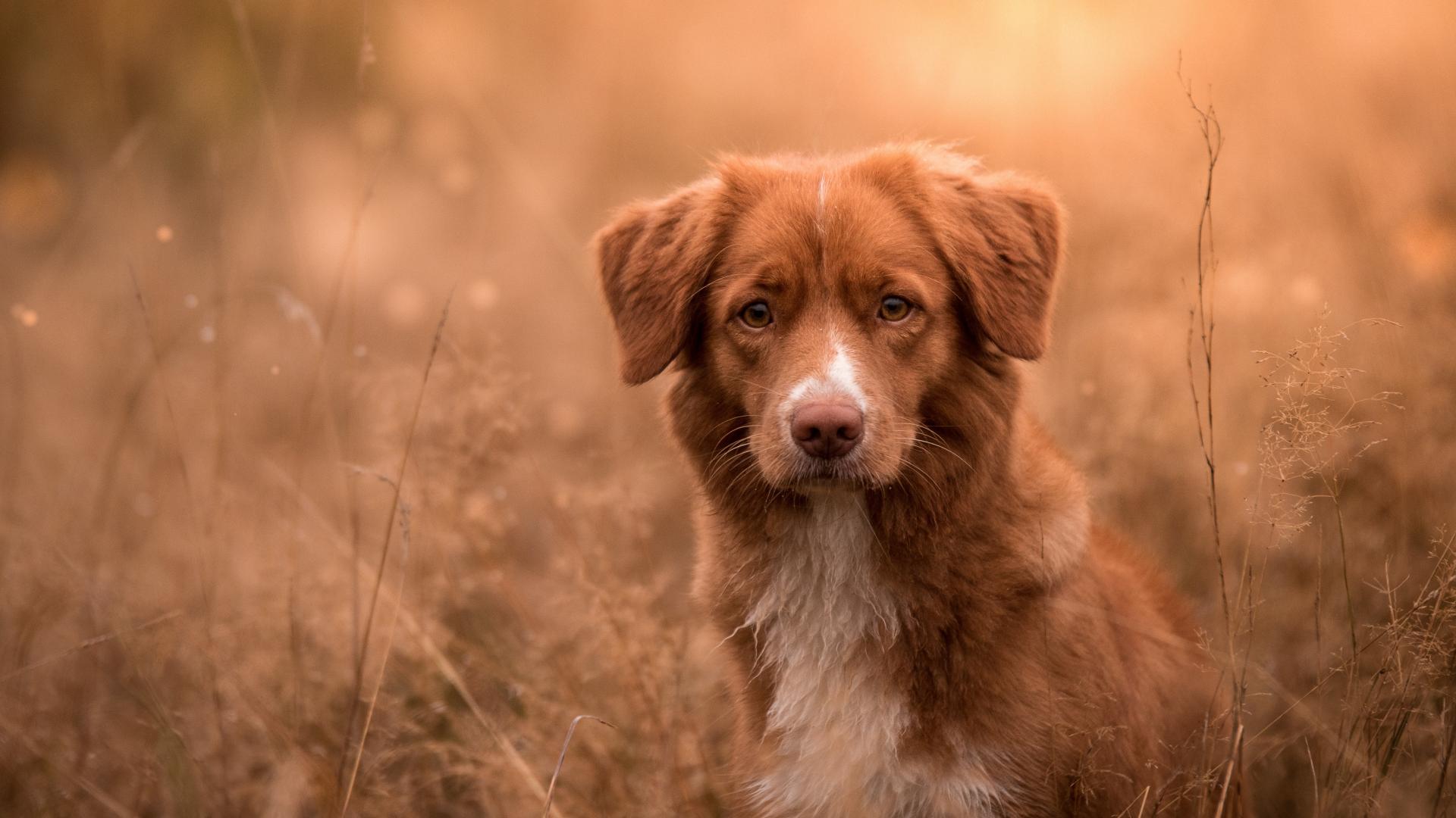 » Wallpaper Red dog sitting in the grass