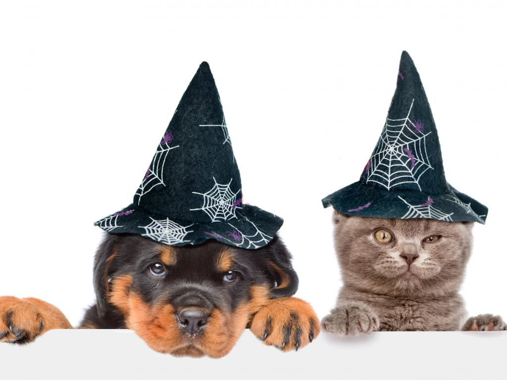 » Wallpaper Puppy and kitten in halloween caps