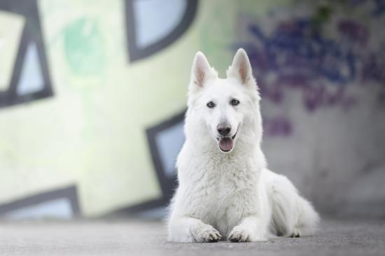 Wallpaper Large White Shepherd Dog with Tongue Out