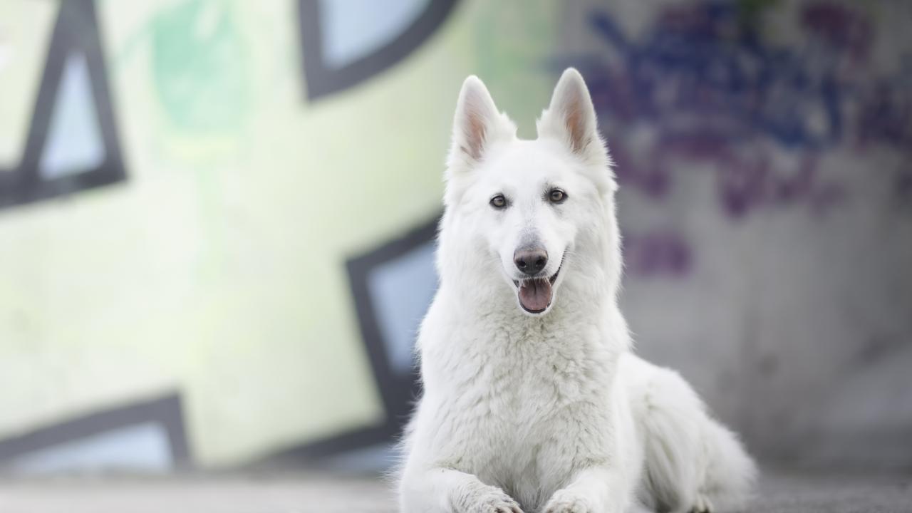 Wallpaper Large White Shepherd Dog with Tongue Out