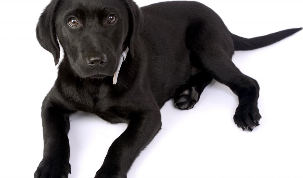 » Wallpaper Little black labrador puppy on a white background