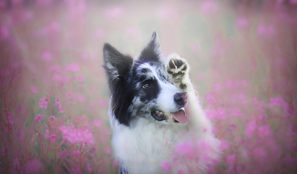 Wallpaper Border Collie with long tongue is sitting in flowers