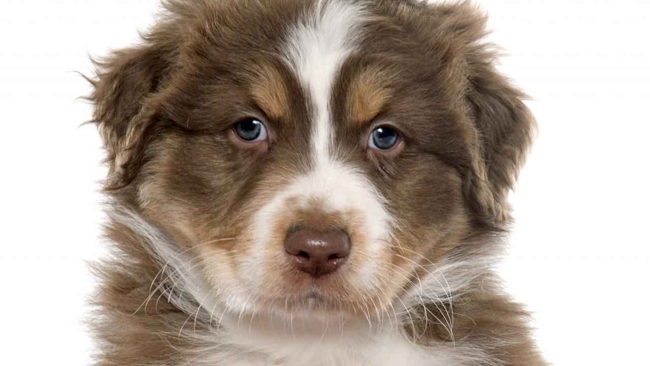 Wallpaper Beautiful puppy of an Australian shepherd on a white background