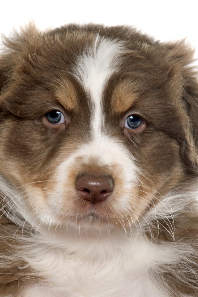 Wallpaper Beautiful puppy of an Australian shepherd on a white background