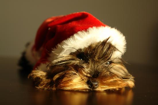 » Wallpaper Yorkshire terrier in christmas hat