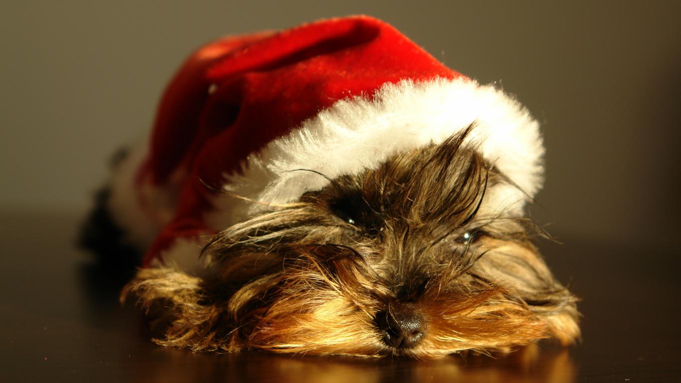 » Wallpaper Yorkshire terrier in christmas hat