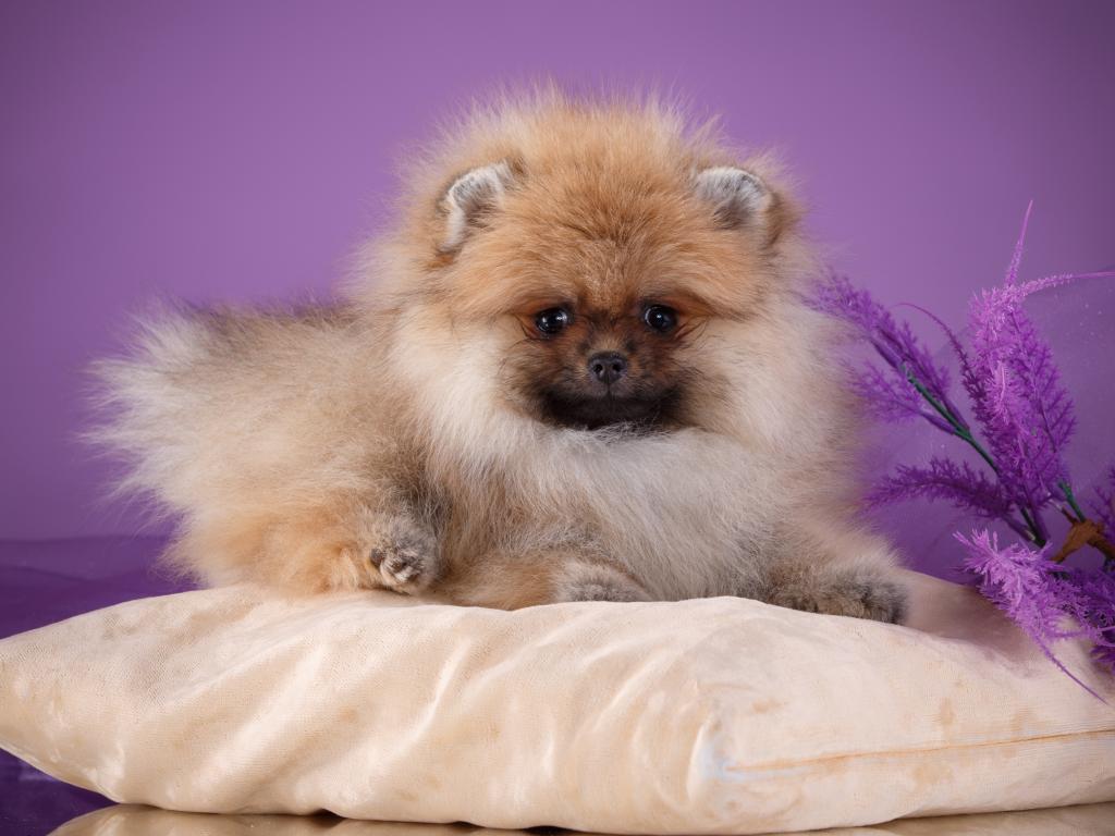 Wallpaper Fluffy Spitz lies on a pillow