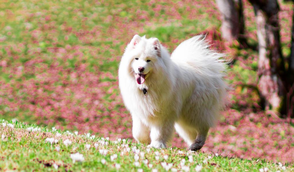 Wallpaper White Samoyed Dog with Tongue Hanging Out