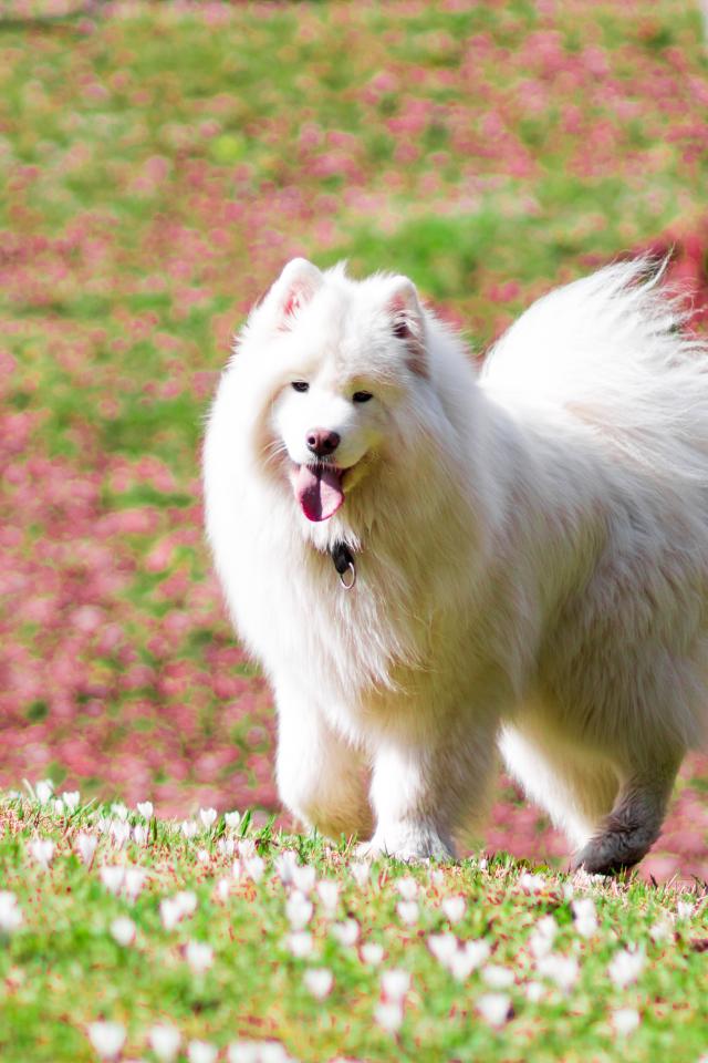 Wallpaper White Samoyed Dog with Tongue Hanging Out