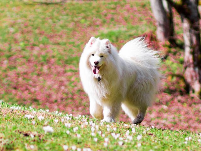 Wallpaper White Samoyed Dog with Tongue Hanging Out