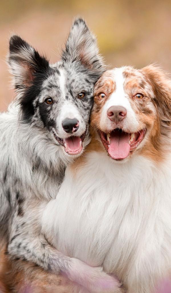 Wallpaper Two Australian Shepherd Dogs with Tongue Out