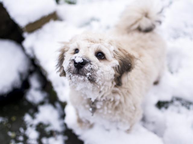 Wallpaper Little white dog in the snow