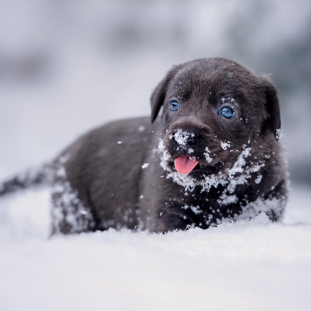 Wallpaper Little Labrador puppy in the snow