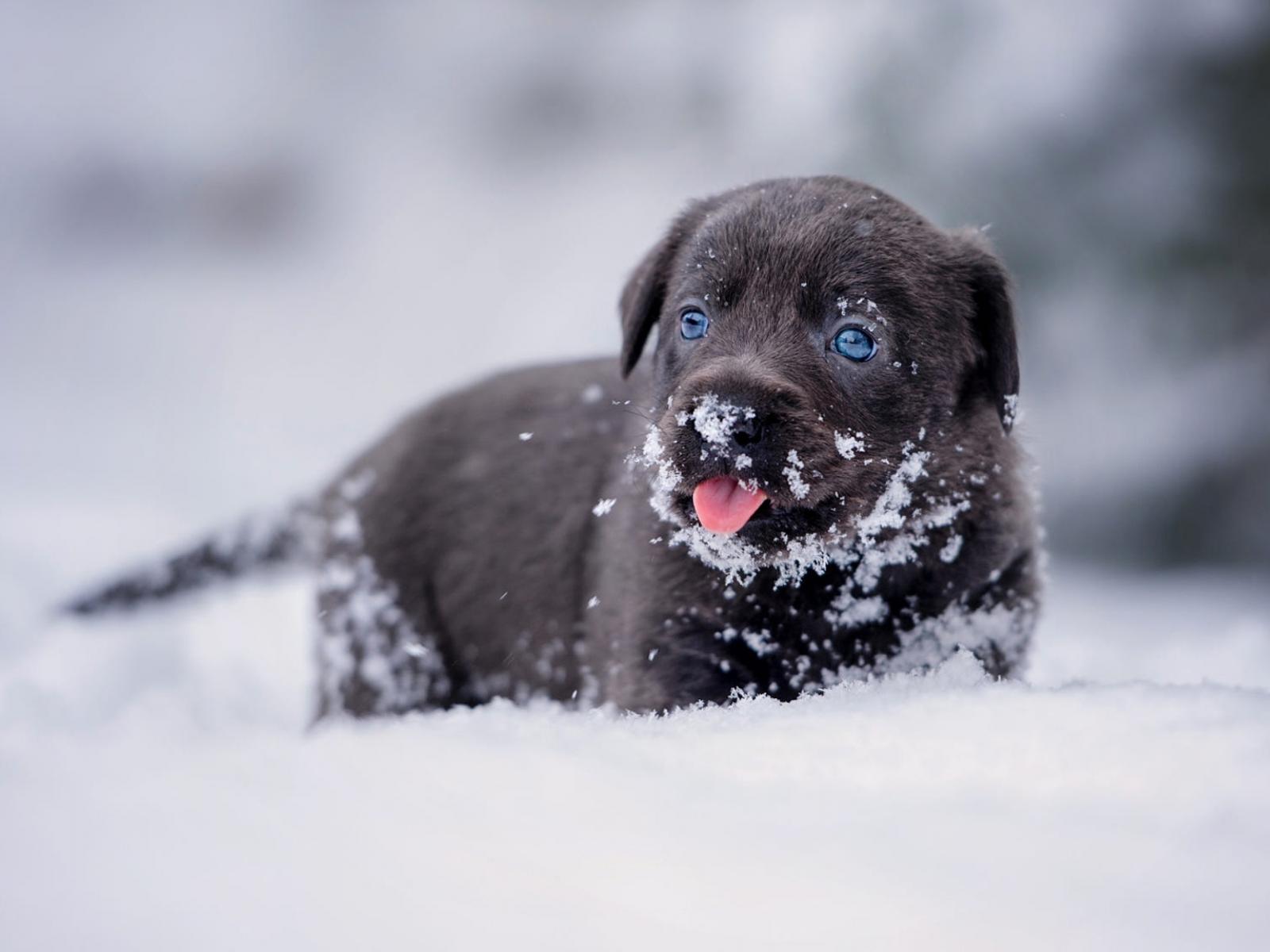 Wallpaper Little Labrador puppy in the snow
