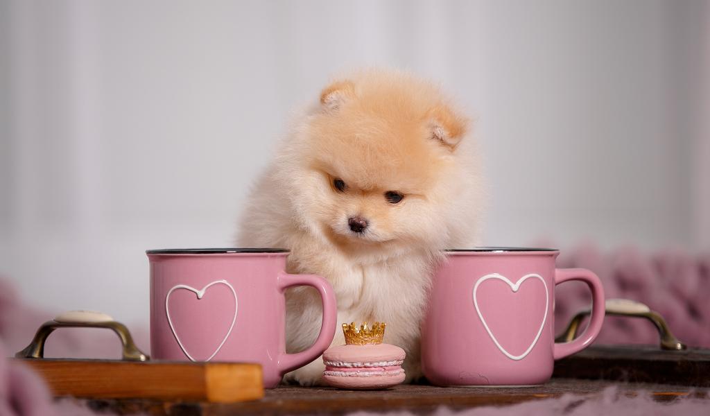 » Wallpaper Cute Pomeranian with pink circles