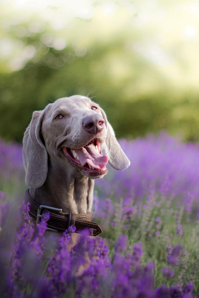 Wallpaper Weimaraner dog with tongue sticking out in flowers
