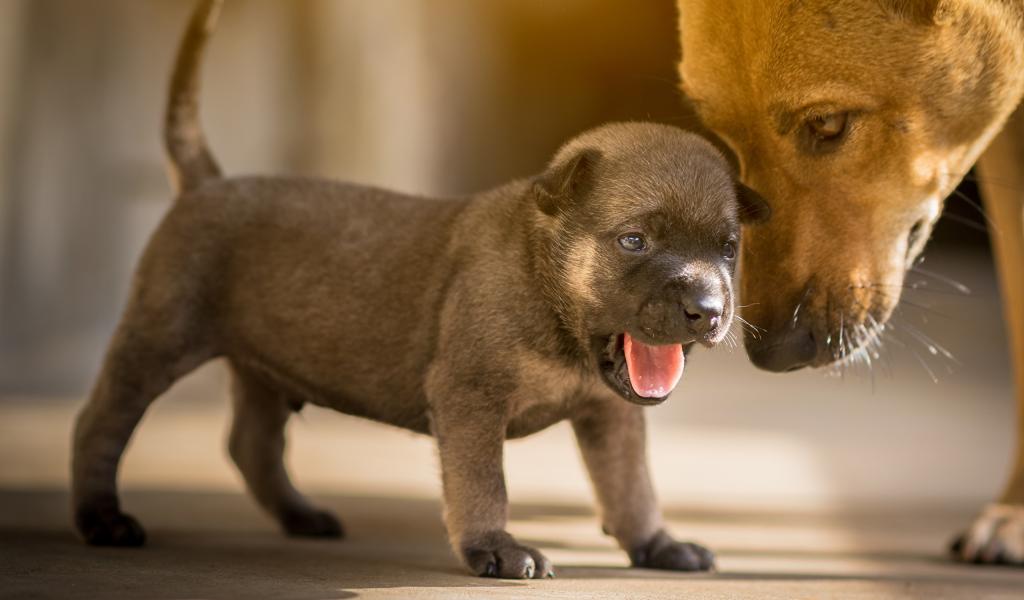 Wallpaper Little puppy with open mouth