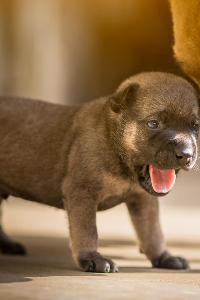 » Wallpaper Little puppy with open mouth