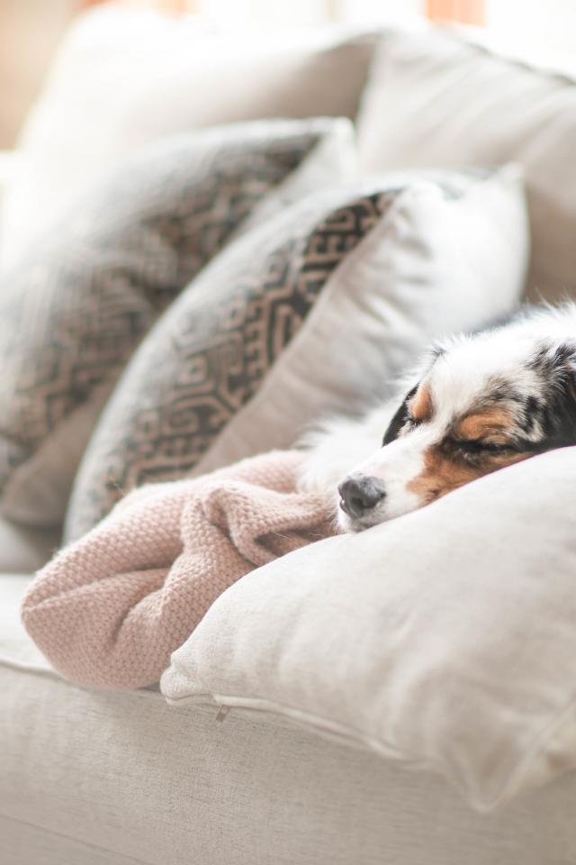 Wallpaper Australian Shepherd is sleeping under the covers on the couch