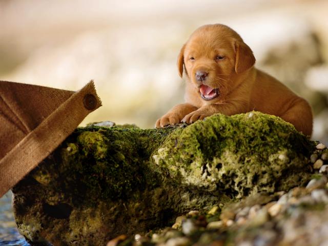Wallpaper Little funny labrador puppy on a stone