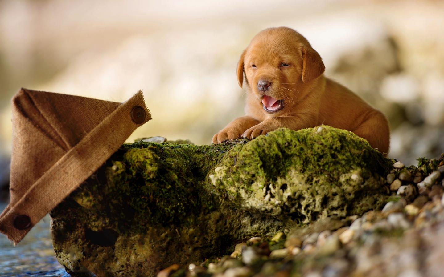 Wallpaper Little funny labrador puppy on a stone