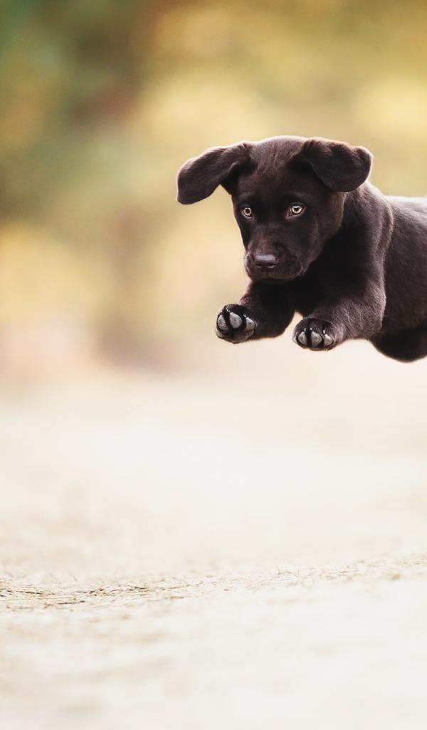 Wallpaper Black funny puppy plays with a ball